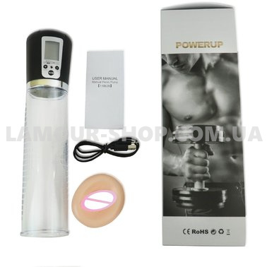 Нужен простой и эффективный способ увеличить пенис? Мощная вакуумная помпа в этом случае — то, что нужно! Предлагаем купить автоматическую вакуумную помпу на аккумуляторе, LED-табло Men Powerup и в дополнение получить реалистичную насадку-вагину для мастурбации. Мощный мотор обеспечивает моментальную откачку воздуха и создание отрицательного давления, за счет чего кровь поступает во все сосуды и капилляры полового члена, и он увеличивается в размерах. Работает помпа от аккумулятора, легко заряжается с помощью USB-кабеля (в комплекте). Доступно мощное всасывание с плавной регулировкой в сторону увеличения и уменьшения (создаваемое давление будет отображаться на табло), не требует никаких навыков и приложения усилий. Первые результаты видны уже после первого использования.