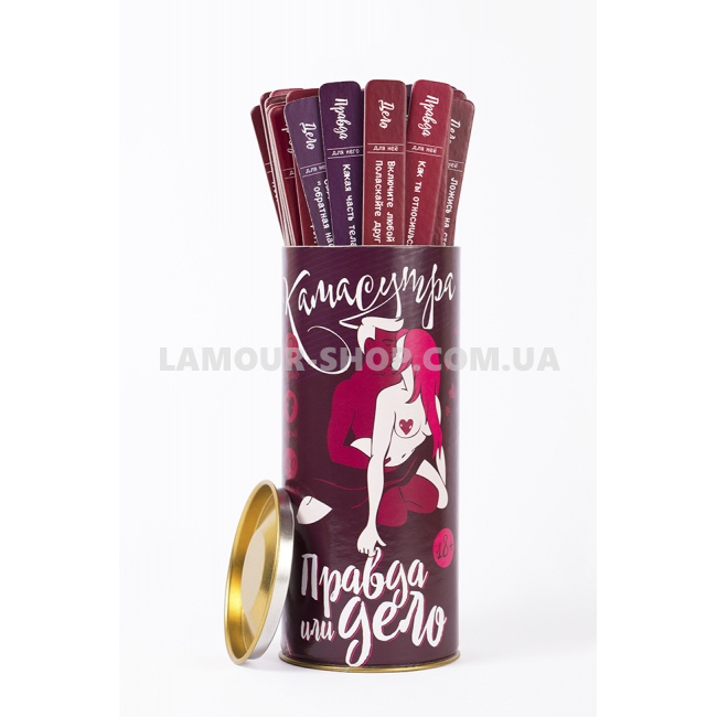 Настольная игра “Правда или дело: Камасутра” - это эротическая игра для двоих, с откровенными вопросами и возбуждающими заданиями. Она раскрепощает, расслабляет и помогает вам делиться друг с другом самыми смелыми и игривыми мыслями. Это возможность поближе узнать своего парня или девушку, попробовать что-то новенькое в постели и насладиться вкусом новых ощущений.