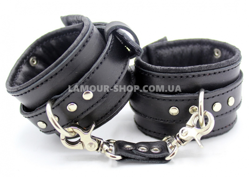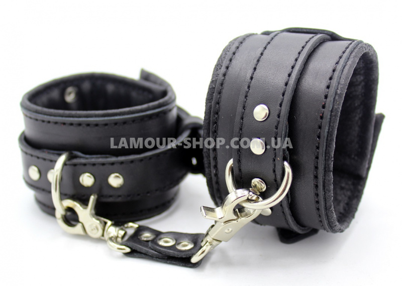 Наручники из натуральной кожи - универсальный аксессуар для постельных игр в стиле БДСМ. Зафиксируйте руки партнера, чтобы предоставить своей фантазии полный карт-бланш. Размер наручников регулируется в зависимости от вашей комплекции: это легко сделать с помощью специальных ремешков, а карабины позволяют сводить руки вместе, или разводить в стороны.