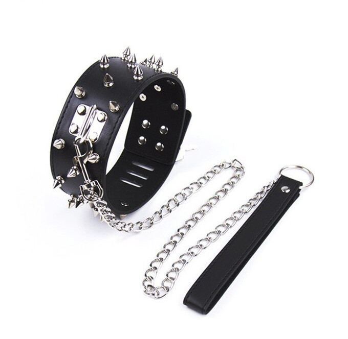 Нашийник із прес-шкіри з металевими шипами. Відмінний аксесуар для БДСМ-ігор.