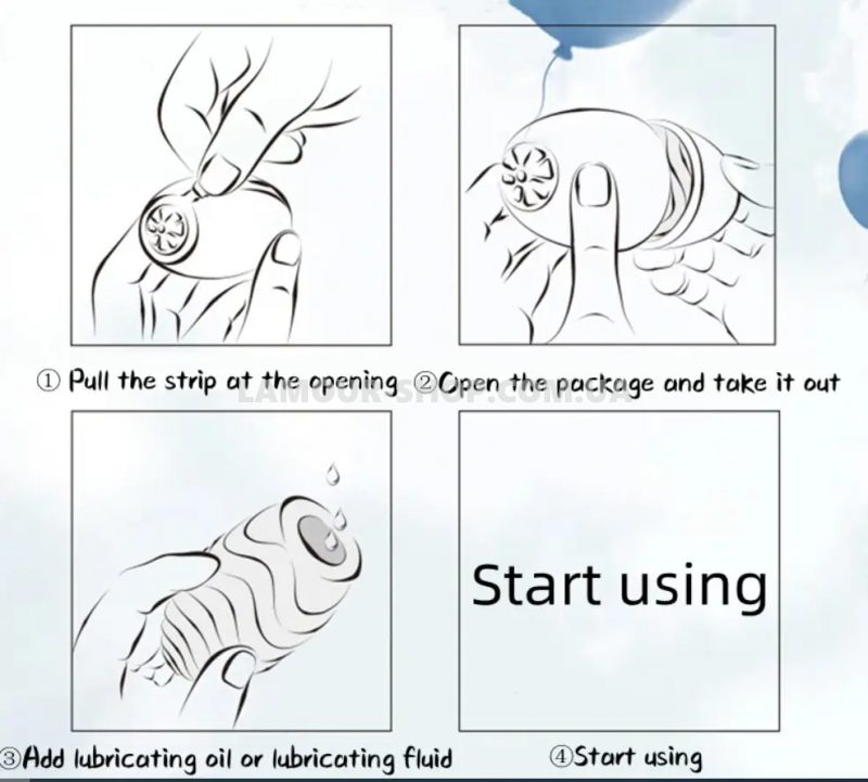 Застосування: Щоб використати, просто зніміть обгортку, дістаньте яйце і натягніть на пеніс, як це презерватив. У комплекті також є пакет з гелем мастилом.