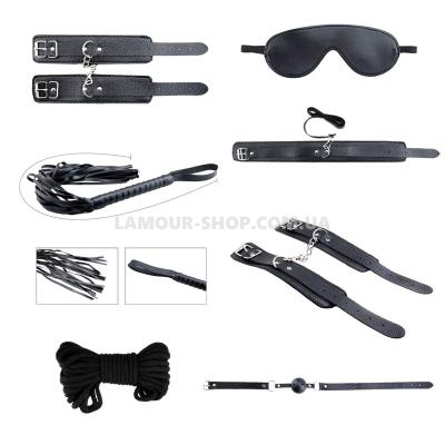 Відразу 8 елементів в одному наборі! Пропонуємо купити набір БДСМ-аксесуарів Alive Secret Desires Black Kit - ідеальний сет для початківців! Тут є все, щоб додати перчинку в інтимну близькість: наручники та поножі, нашийник та повідець, маска та кляп, флогер та мотузка для шибарі. Причому, наручники та поножі можна фіксувати між собою у будь-якій комбінації. Зафіксуйте партнера або партнерку та втілюйте свої фантазії від та до!