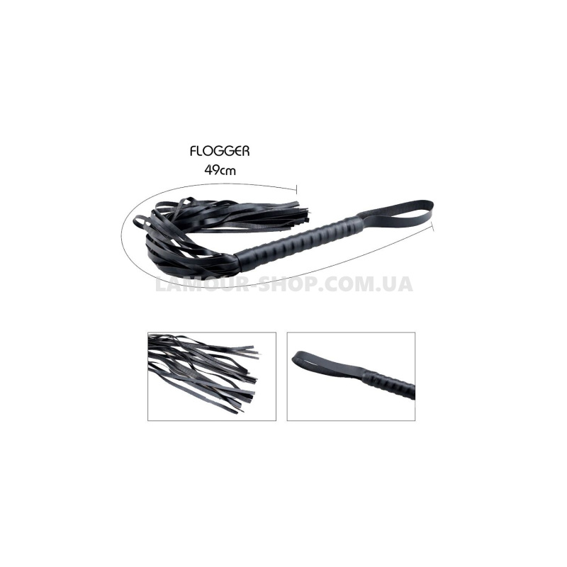 Невеликий флогер для дражливих поплескування та чутливих ляпанців. Довжина флоггера 43 см, робочої частини - 31,5 см, діаметр ручки 1,6 см. Рукоятка з обплетенням та петлею, комфортна та неслизька.