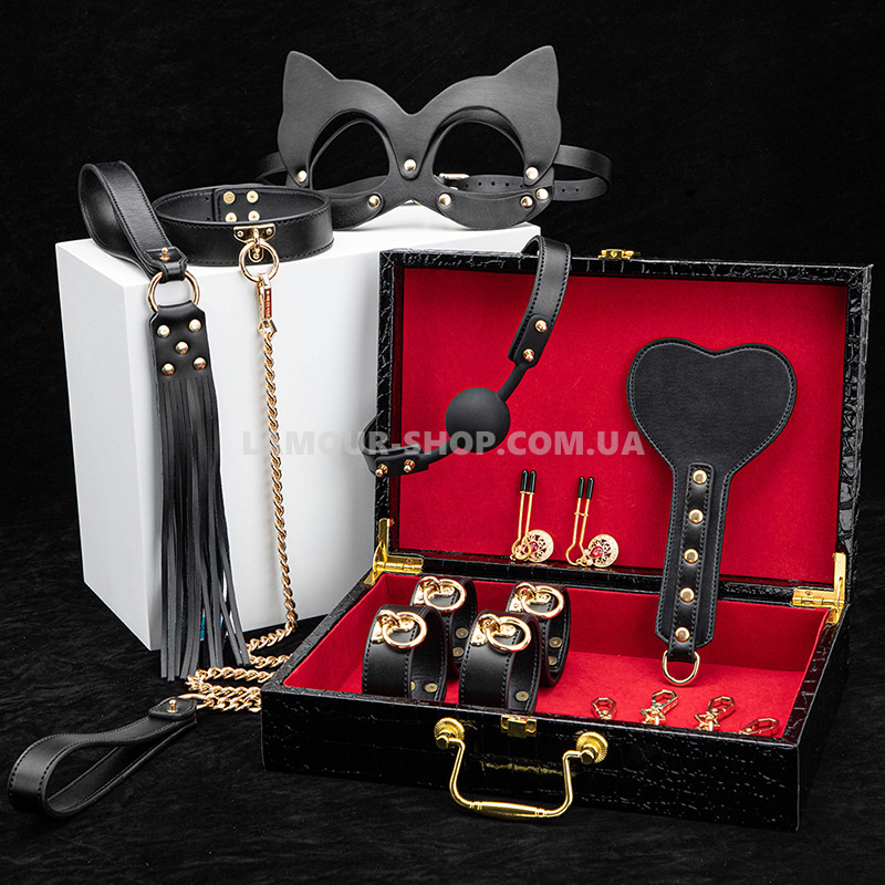 Набір БДСМ чорного кольору. До складу набору входять ігрові аксесуари, а саме: