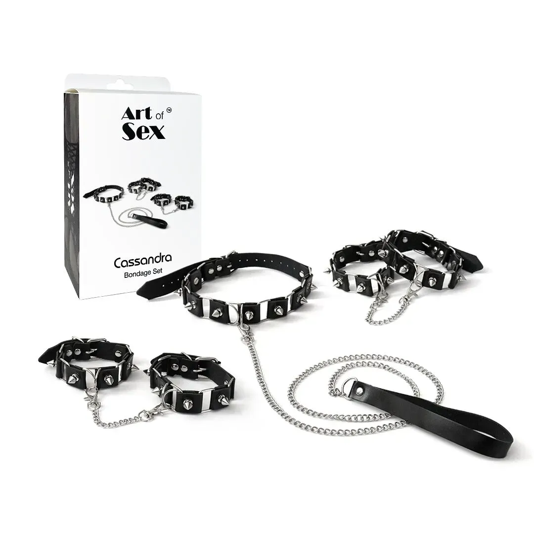 Бондажний набір: нашийник з повідцем, наручники та поножі Art of Sex - Cassandra – це повноцінний набір для інтимних експериментів.