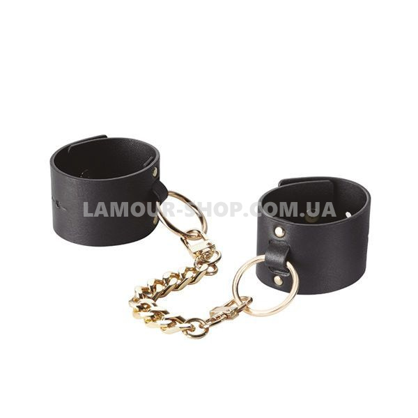 Наручники выглядят очень дорого и презентабельно, изготовлены из качественных материалов и стилизованные под кожу. Классический черный цвет эффектно контрастирует с золотистой цепочкой. Регулируются по объему, сама манжета довольно мягкая и не будет натирать. Такие наручники - идеальный вариант романтического подарка с намеком на последующий эксперимент.