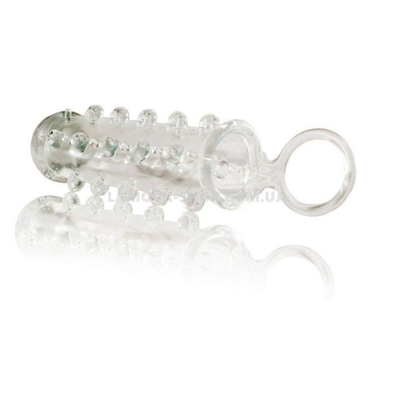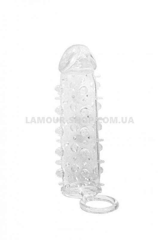 Прозора та еластична насадка на член зробить Ваш статевий орган довшим на цілих 3 см. А кільце для мошонки біля основи насадки допоможе продовжити статевий акт та надійно зафіксує насадку на члені.