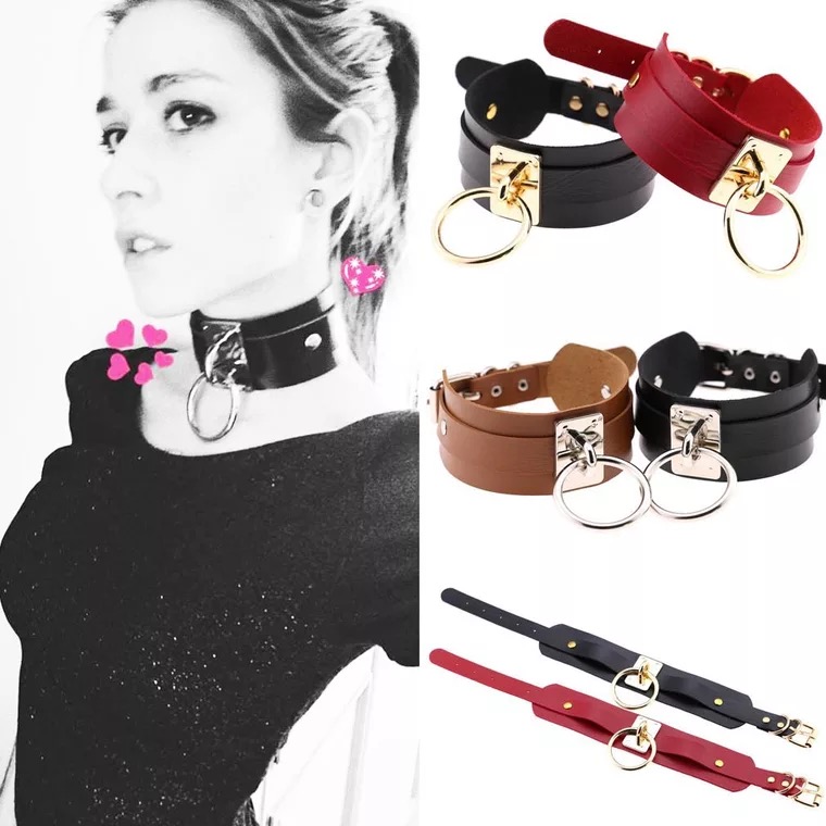Нашийник з еко шкіри з кільцем, чорний.
