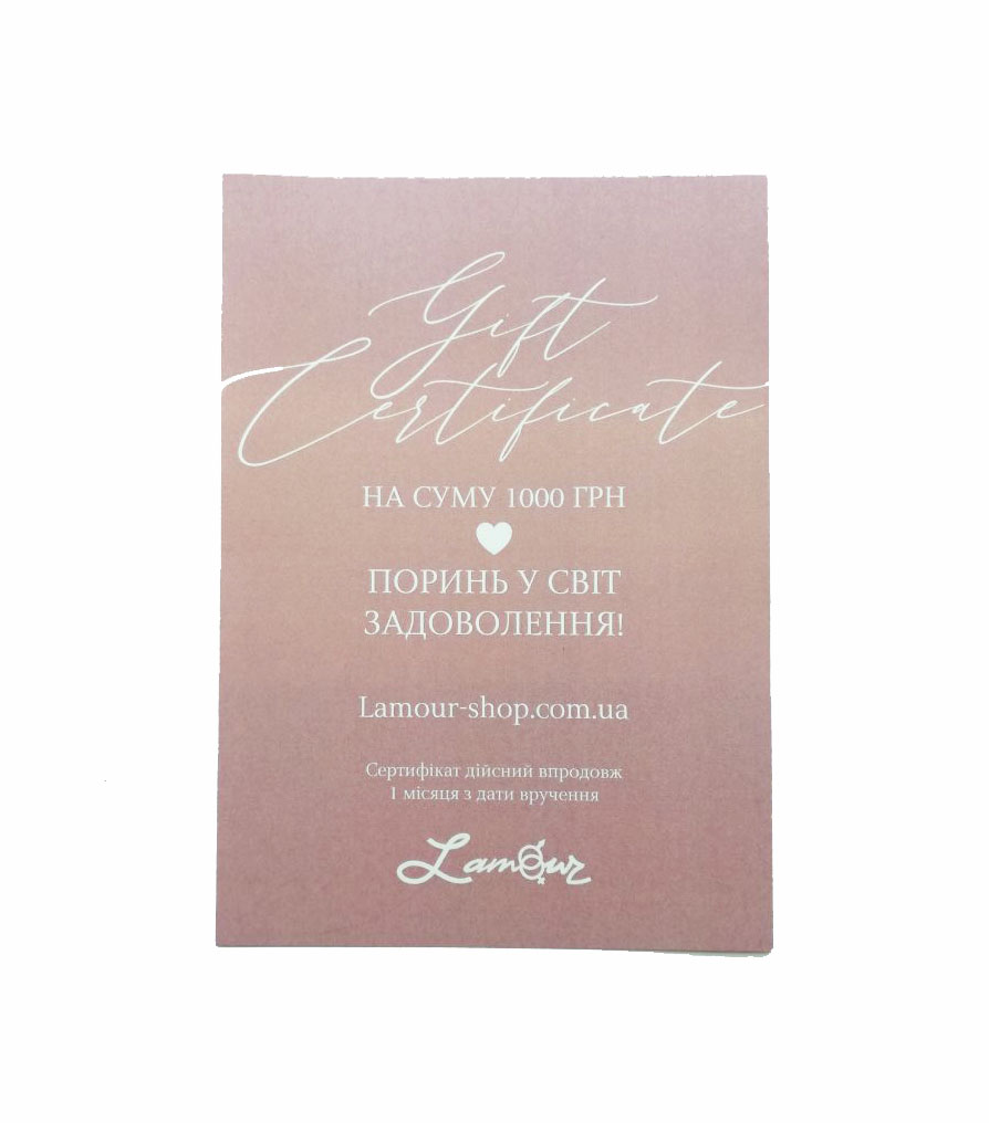 Подарунковий сертифікат від Lamour номіналом 1000 грн. Поринь у світ задоволень!