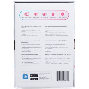 Подвійний смарт вібратор Lovense Dolce (Quake) повністю водонепроникний (IPX7), тому його можна взяти і в джакузі. Час роботи вібратора до 120 хвилин, час заряджання 70 хвилин (під час заряджання горітиме червоний індикатор, який згасне, коли вібратор зарядиться). У комплекті є атласний чохол.
