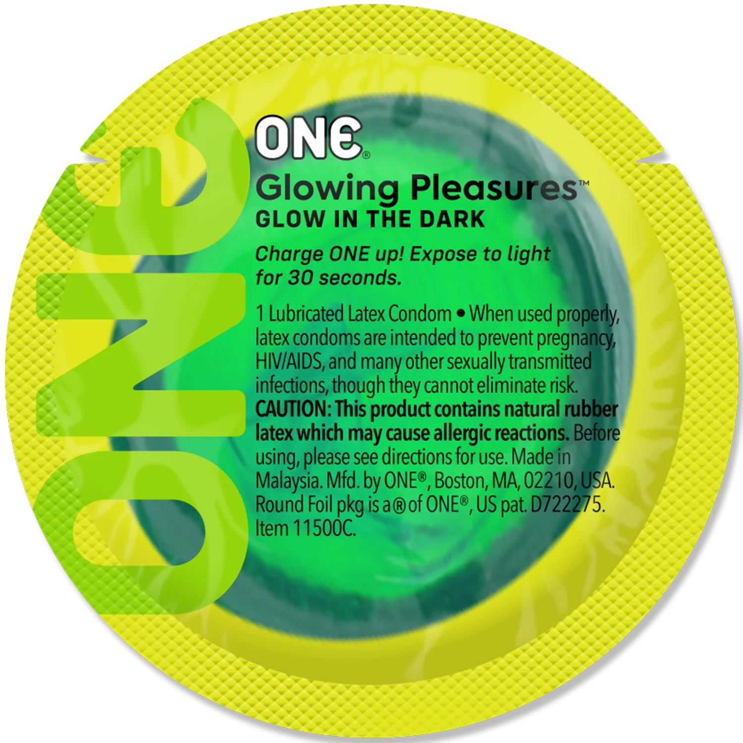 Пропонуємо купити презервативи ONE Glowing Pleasures - вони забезпечать вам не тільки максимально природне задоволення від інтиму, але й перетворять процес на незабутнє видовище. Особливість цих презервативів – здатність м'яко світитися у темряві завдяки особливому нетоксичному пігменту. Люмінесцентна речовина «запаяна» у внутрішньому шарі презервативу, тому не зітреться під час використання.
