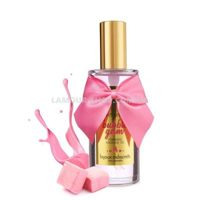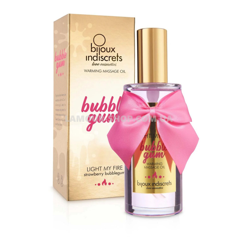Розігрівальна їстівна масажна олія Bijoux Indiscrets Light My Fire Strawberry Bubblegum з ароматом полуничної жувальної гумки: