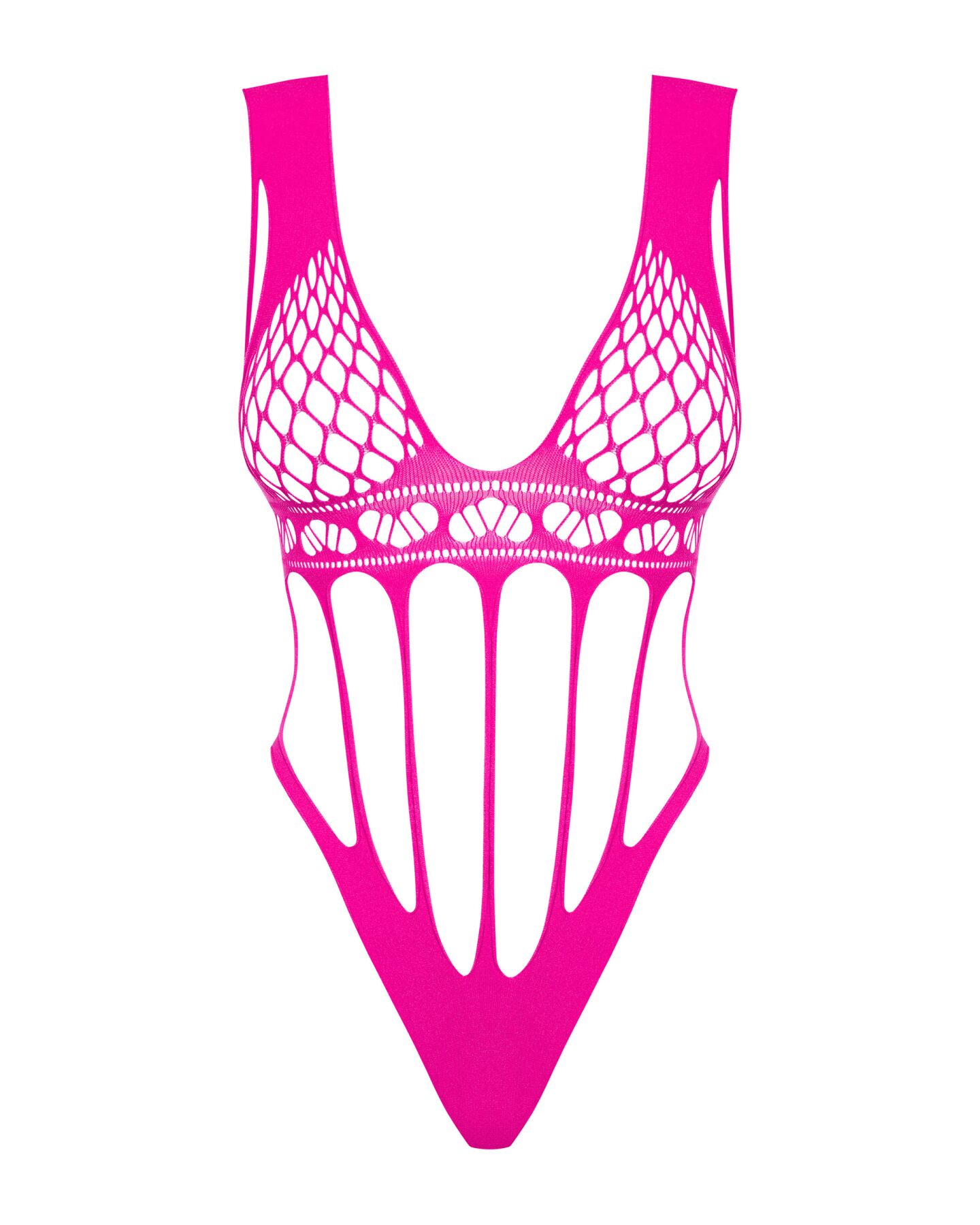 Сітчастий бодістокінг із поздовжніми вирізами Obsessive B121 teddy пошитий з приємного, еластичного та міцного матеріалу Multistretch, створеного за технологією 3SKnit.