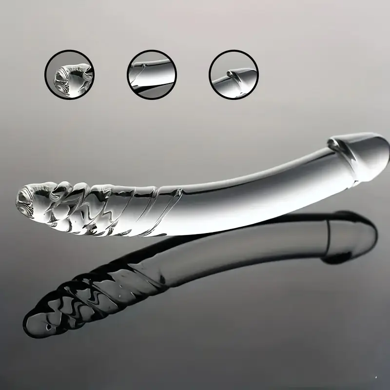 Двосторонній скляний дилдо підходить як для стимуляції точки G, так і для анального отвору. Гладкий кінець з одного боку, і ребристий з іншого дозволяє вибирати інтенсивність стимуляції за вашим бажанням. Крім того, скло легко переймає температуру,тому ви можете охолоджувати або нагрівати секс-іграшку для ще більш різноманітних та яскравих вражень.