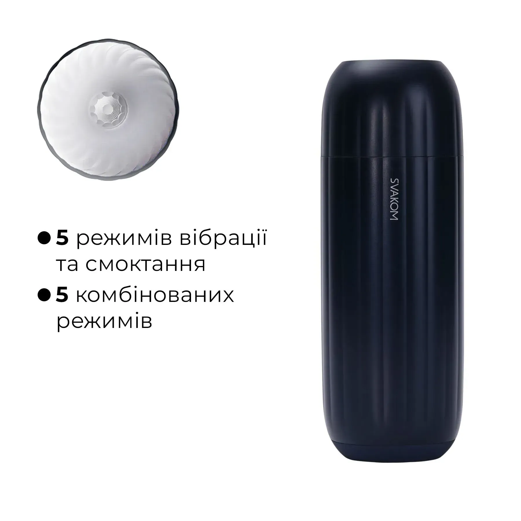 У застосунку Svakom можна перемикати режими, регулювати інтенсивність обох моторів, комбінувати за своїм бажанням режими вакууму та вібрації, а також — передавати керування мастурбатором на відстані.