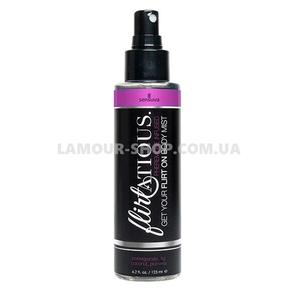 Шикарный мист для самых ярких! Чтобы привлечь внимание и ощутить себя невероятно сексуальной, рекомендуем купить спрей-мист для тела с феромонами Sensuva Flirtatious Pomegranate, Fig, Coconut & Plumeria Body Mist — легкий и невесомый, этот спрей окутает тебя свежим фруктовым ароматом граната, инжира и кокоса, а нотка цитрусово-пряной плюмерии добавит загадочности. В состав входят феромоны, чтобы никто не устоял перед твоей привлекательностью, а также — растительные экстракты и витамин Е, чтобы кожа всегда была ухоженной и сияющей. Можно использовать для ароматизации воздуха в комнате!
