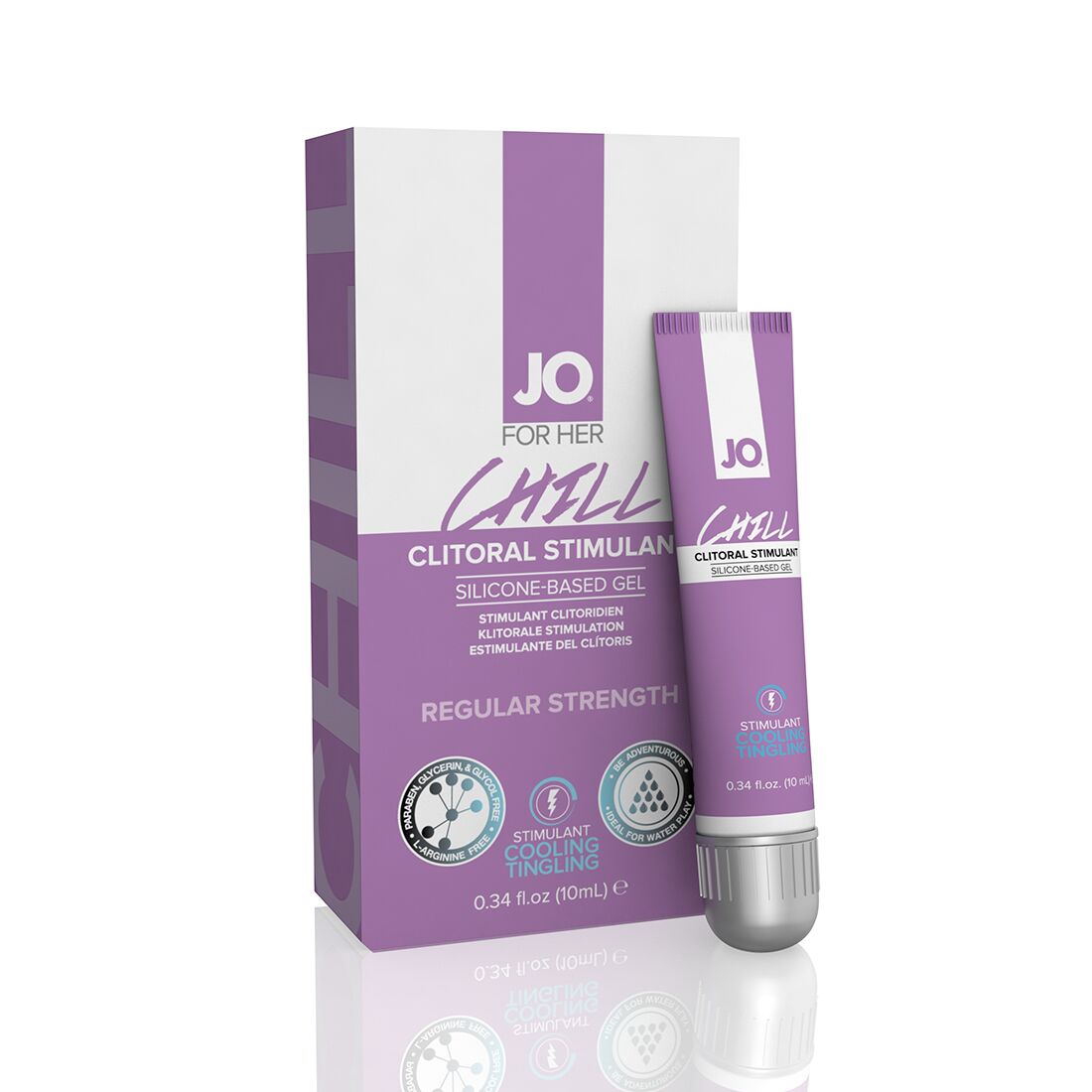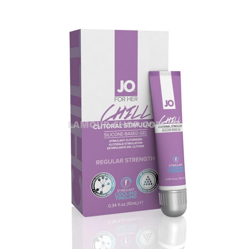 Стимулюючий гель для клітора System JO CHILL COOLING забезпечує довге ніжне ковзання, виготовлений з високоякісного силікону, не містить консервантів і не боїться води, надаючи можливість втішатися в нестандартних умовах. Прекрасна ідея для тих, хто шукає незвичайних відчуттів: легке поколювання, як холодний електричний струм, зробить самостійні або спільні з партнером ласки ще інтенсивнішими. Крім того, такий гель має збуджуючу дію і чудово підійде для «швидкого сексу». Ефект залежить від індивідуальної чутливості.