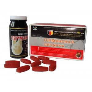 При виготовленні таблеток для потенції Німецька вівчарка використовувалися стародавні рецепти про підкріплення «ЯН» чоловічої сили. Має хороший лікувальний вплив при захворюванні простатитом, живить нирки, сумісний з алкоголем. Використовувана сировина — це цінні ліки китайської медицини, такі як екстракти диких чорних мурах, епідеміум, морінда, женьшень, панти, екстракт крові оленя, екстракт статевого органу оленя, сирий женьшень, циноморій, корінь аконіту, цинамон, китайські дерези, червоподібні трави, гігантська ящірка, крокус, цистанхі та ін. Науковий досвід показує, що застосовуючи таблетки Німецька вівчарка, можна регулювати не тільки статеву сферу у чоловіків, але і баланс людського організму в цілому, як загальнозміцнюючий організм містить багато корисних мікроелементів і вітамінів. Також таблетки Німецька вівчарка відіграють тонізуючу роль. Особливо корисний засіб Німецька вівчарка людям, ослабленим і з гіпофункцією нирок.