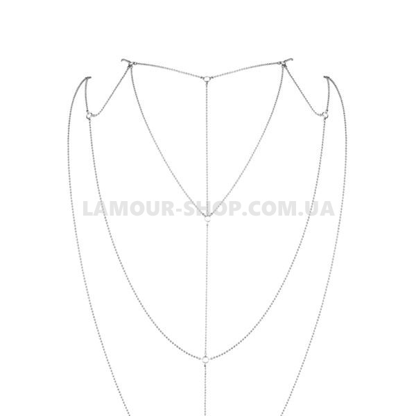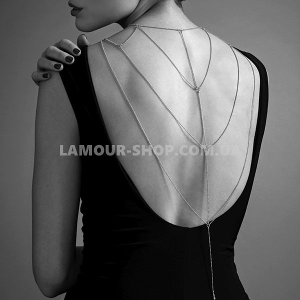 Секрет идеального образа — всегда в деталях, и такой деталью вполне может стать данное украшение. Как легкая паутинка, оно нежно ляжет на спину и подчеркнет женственность линий. Теплый золотистый оттенок подойдет и под вечернее платье, и под открытый летний сарафан, и под чувственный лук в эротическом наряде. Застегивается через шею. Будьте аккуратны во время близости — цепочка может порваться.