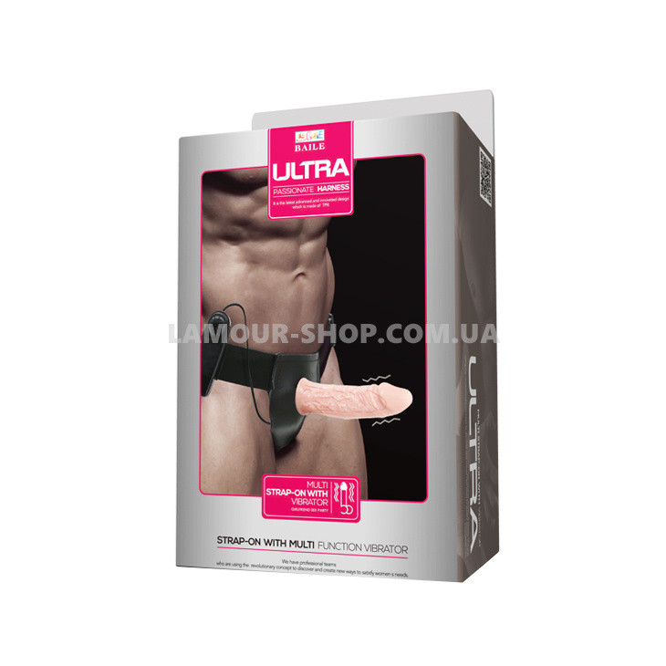 Страпон з вібрацією тілесного кольору з виносним пультом, виконаний з TPR, з рельєфною поверхнею. Працює від 2 батарейок АА, немає в комплекті. Дуже гнучкий, м'який, але водночас пружний, не має швів. Зручні ремінці на гумці дозволяють надійно і комфортно фіксувати секс-іграшку на стегнах і сідницях.