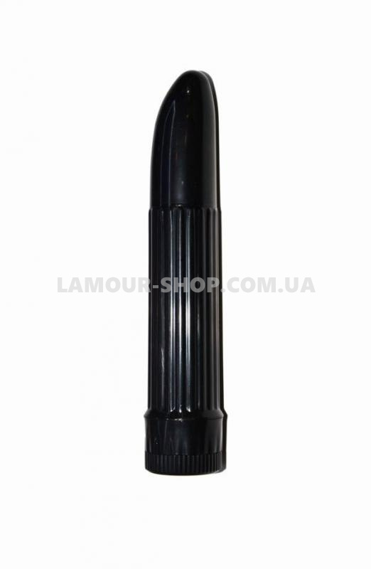 Пластиковый вибратор черного цвета, до половины с выпуклой ребристостью, оснащен функцией плавной регулировки вибрации. L=16 см, d=3,5 см