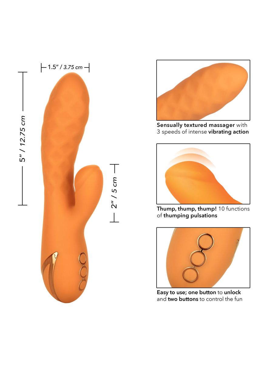 Погрузитесь в движение океана вместе с California Dreaming® Newport Beach Babe. Роскошный массажер имеет 10 интенсивных дразнящих функций, 3 скорости вибрации и текстурированный ствол для потрясающего удовольствия.