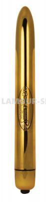 Утонченный дизайн RO-150mm SLIMLINE обязательно понравится всем без исключения. Тонкая форма этой элегантной вещицы украсит любую дамскую сумочку. Гладкая золотистая поверхность выглядит соблазнительно и возбуждающе. Так и хочется поиграть с этой изящной игрушкой! Мощный бесшумный вибратор готов в любую минуту подарить самые яркие ощущения. Каждый из десяти режимов вибрации будет с новой силой накрывать Вас страстными эмоциями с головой. Почувствуйте что такое настоящее блаженство с игрушкой Экстра класса RO-150mm SLIMLINE!