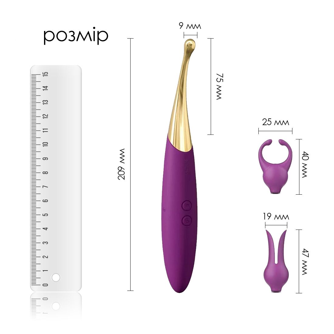 Діаметр головки для кліторальної стимуляції: 0,9 см.