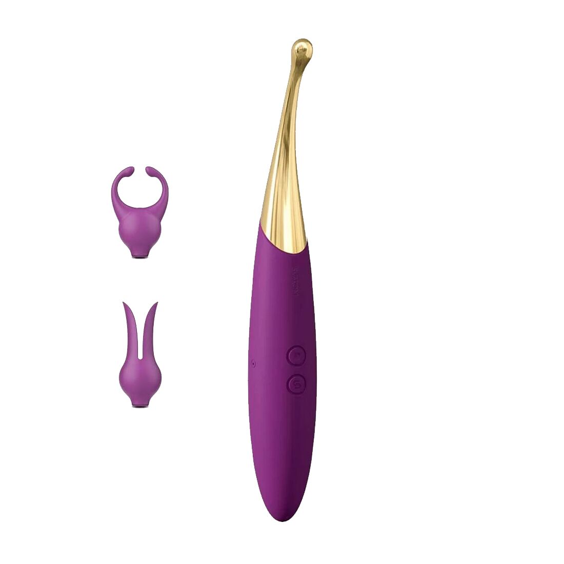 Силіконова насадка з роздвоєним кінчиком для двосторонньої стимуляції клітора і сосків: вона захоплює перлинку з двох сторін і зводить з розуму своїми відростками, що тремтять.