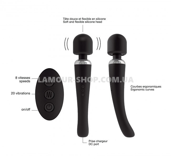 Вібромасажер Marc Dorcel MEGAWAND оснащений великою, гладкою головкою, із найніжнішого силікону. Вона рухлива завдяки гнучкій шиї. У Вашому розпорядженні 20 режимів вібрації та 8 швидкостей, які дозволяють у комбінації насолоджуватися 160 комбінаціями ритмів!