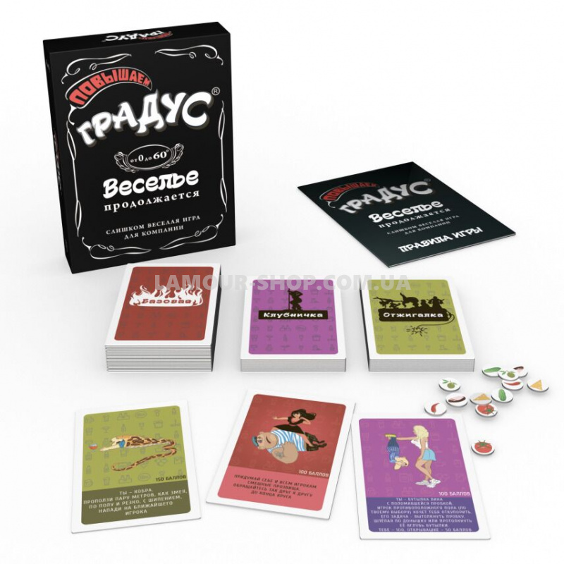 Це одночасно і самостійна гра для 3 – 12 осіб та продовження найвеселішої гри для компанії «Градус».